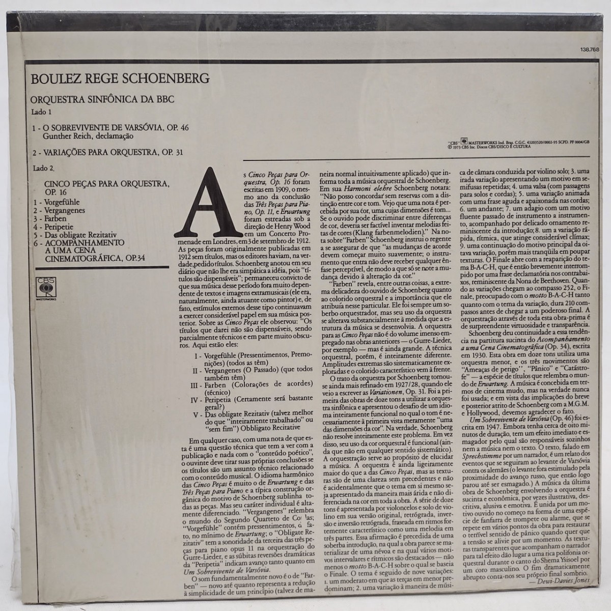 LP BOULEZ / SCHOENBERG - ORQUESTRA SINFÔNICA DA BBC - 1973 - DISCO E CAPA MINT