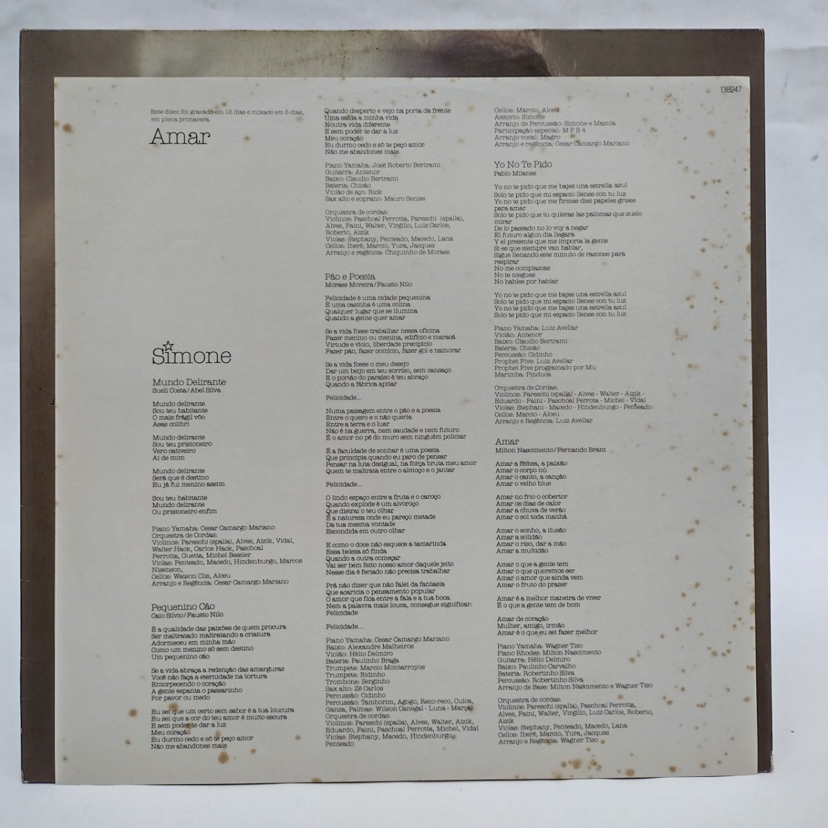 LP SIMONE - AMAR - 1981 - DISCO NM - CAPA VG+